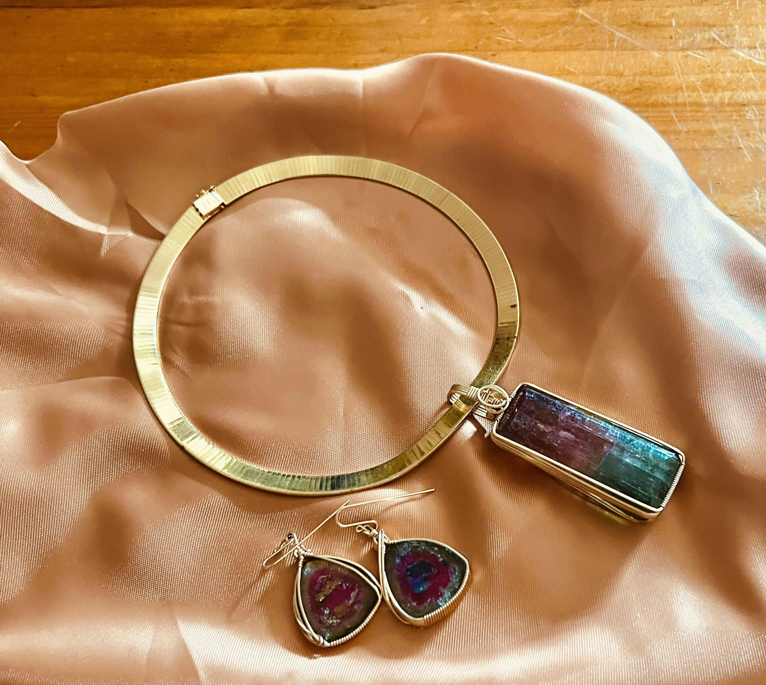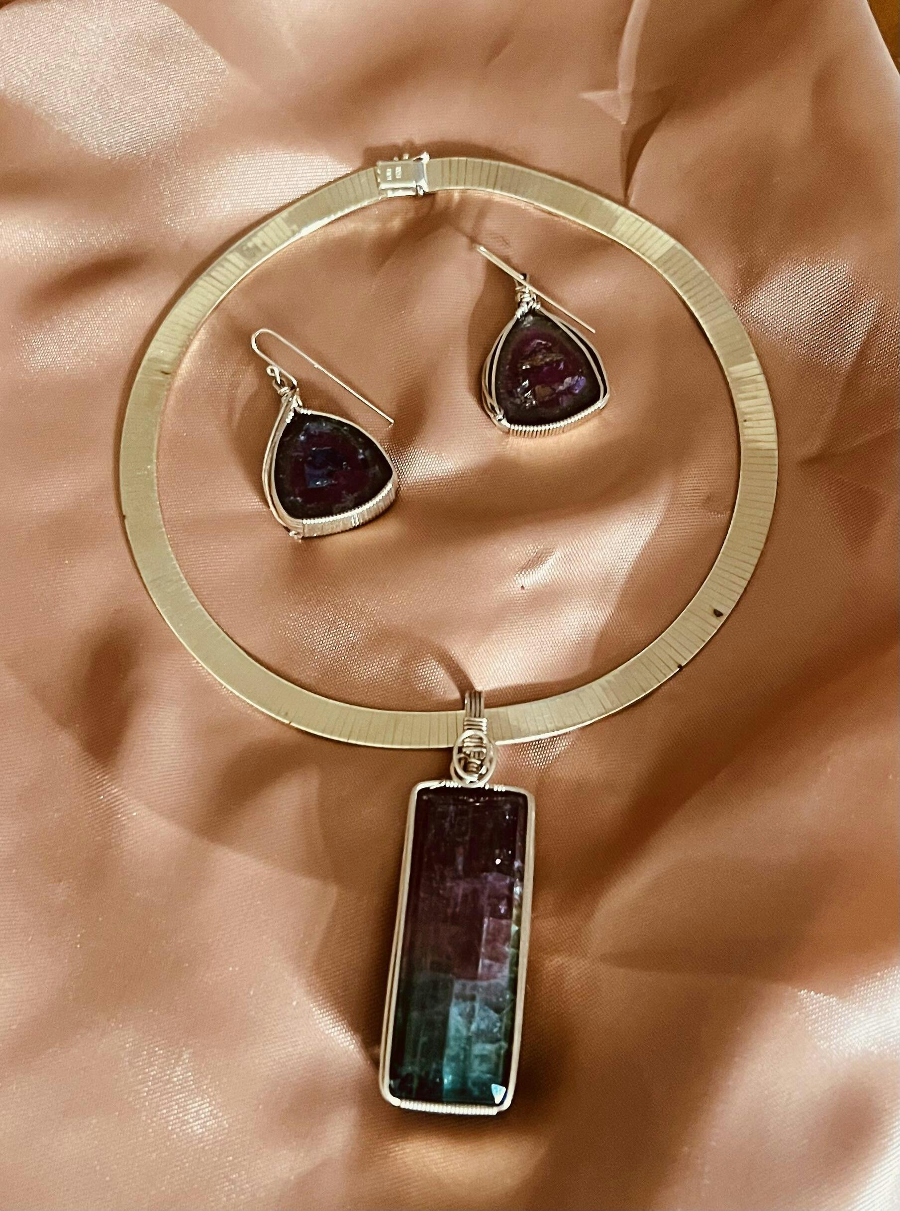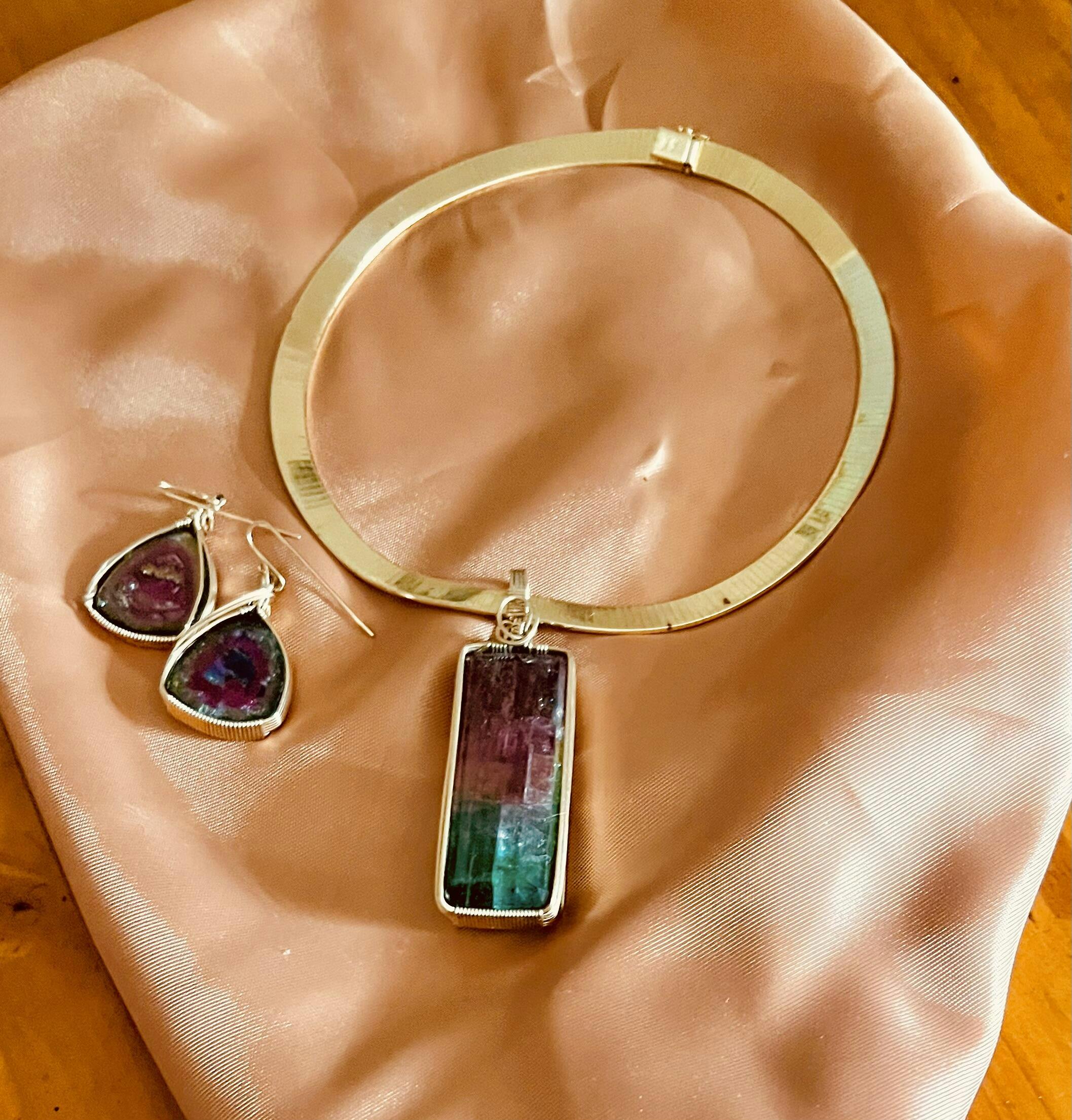 Customer “This review is prepared to make my fellow jewelry lovers aware of masterpieces produced by EngWorks. I am the surprised recipient of a one-of-kind watermelon tourmaline pendant and matching earrings. Exquisitely wire wrapped by the artist, this is a masterpiece which would rival the best in museum quality pieces. I am proud to show them to the world. E.K. Cedar Rapids IA